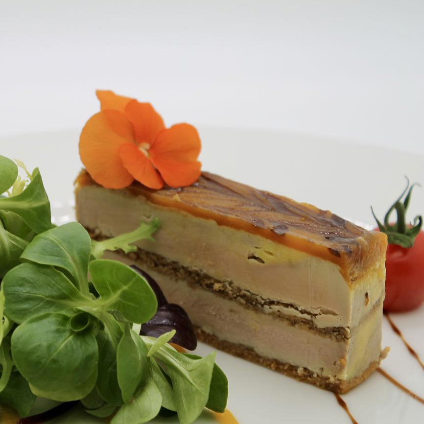 • Pressé de foie gras pain d’épice et son miroir cassis